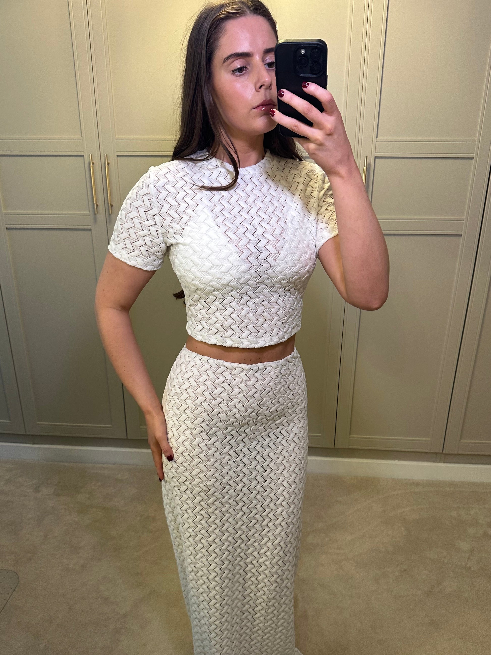 - Fitted maxi skirt with elasticated waist